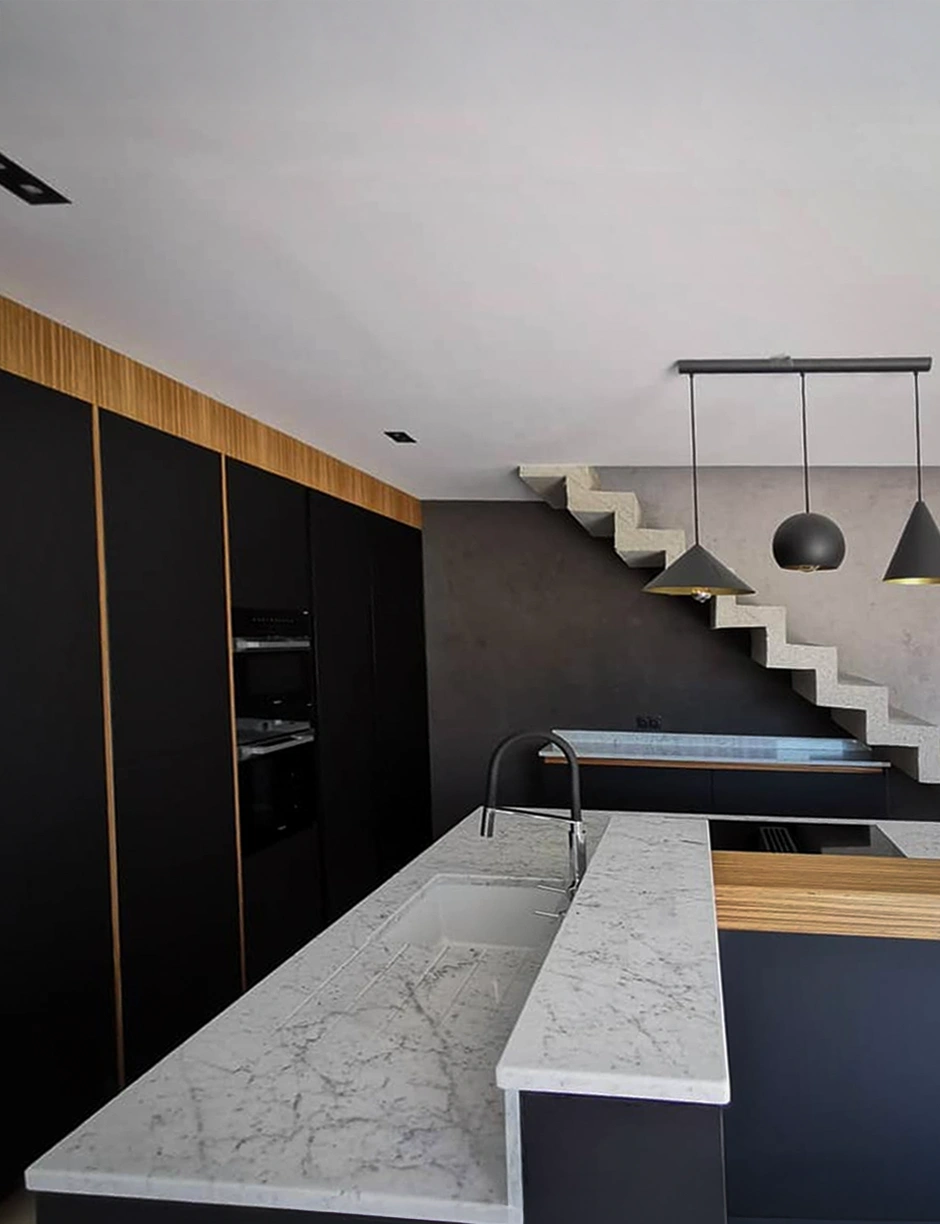 Cette précision permet d’obtenir une cuisine à la fois fonctionnelle, durable et parfaitement intégrée à son environnement, sans compromis entre la technique et l’esthétique.